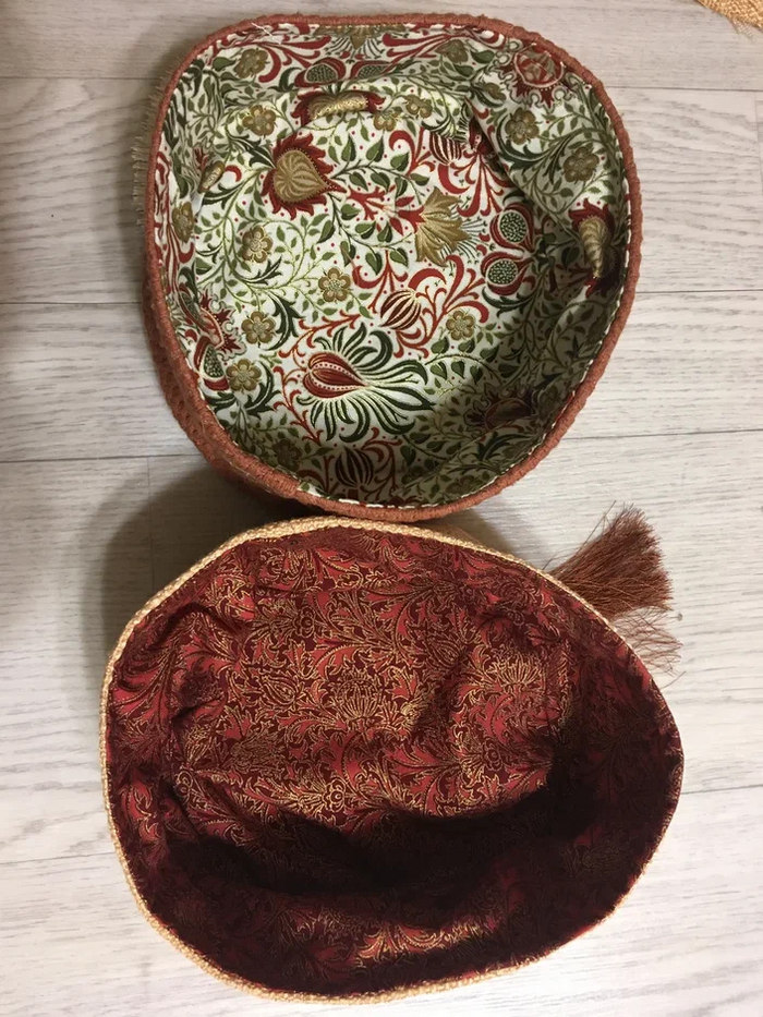 А вот это - курительные шапочки, от заготовки до примерки %) На подкладке - узорчатый дорогущий хлопок, волшебнее некуда!