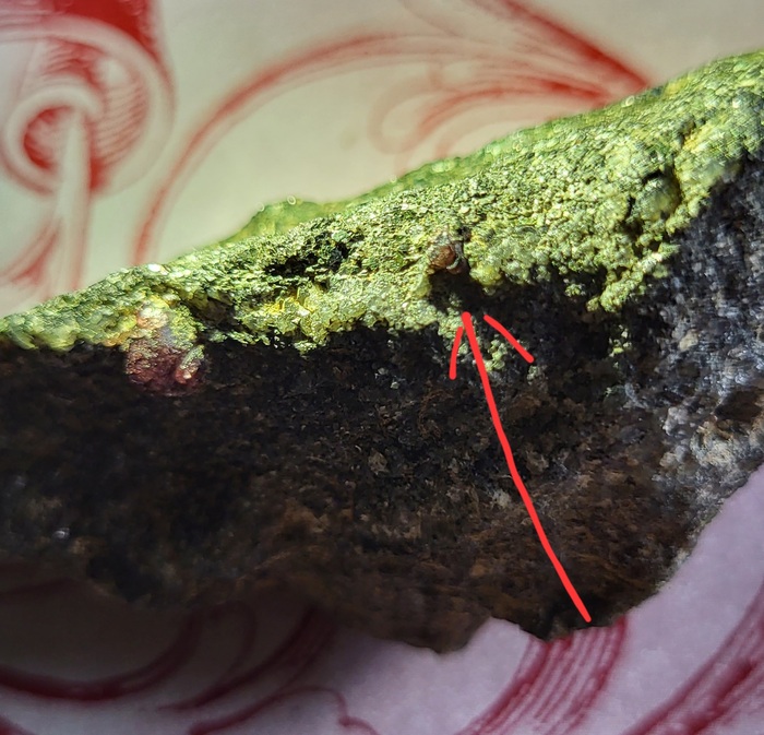С другого края у камня есть углубление, в котором похоже тоже была гранатовая частичка.