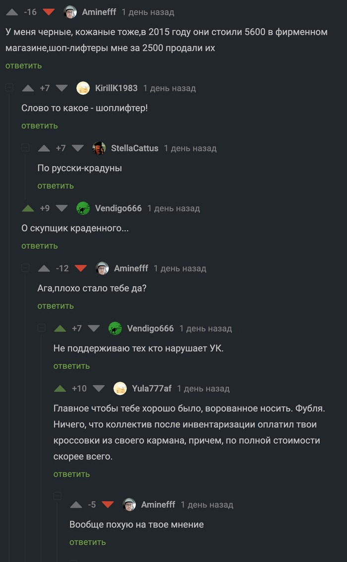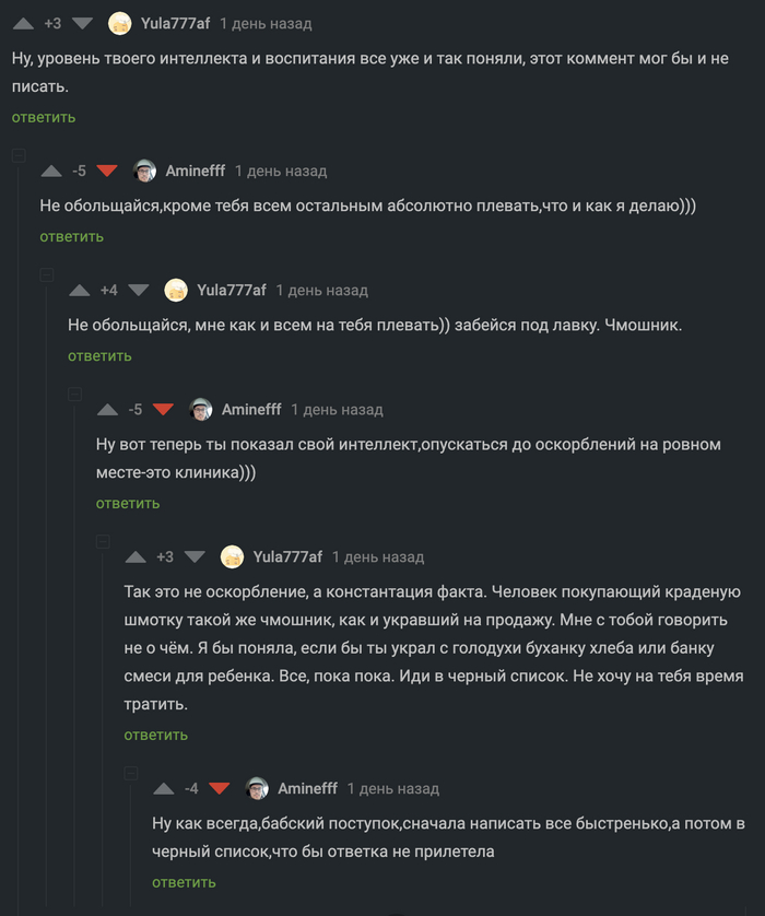 Мне вот кажется, что господин @Aminefff заслуженно получил свое звание от @Yula777af, предлагаю выразить свое мнение здесь, не сливая господина, хотя там нечего сливать, но все же #comment_242357388