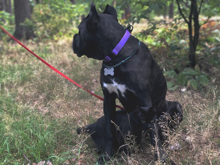 Ещё фотки с совместной прогулки с собакой. Причем на совместных прогулках, обе проявляют намного больше внимания друг другу, чем дома.