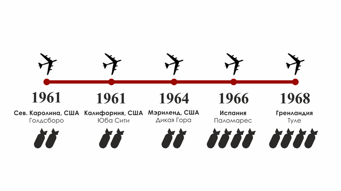 После этого произошло ещё несколько происшествий, в результате которых США "уронили" в общей сложности 14 термоядерных бомб.