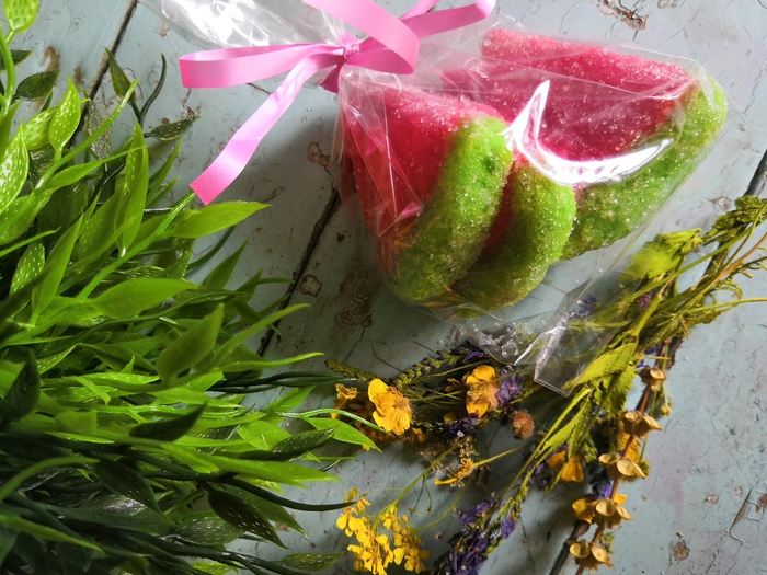 Очень популярный скраб в виде арбуза с маслом арбузной косточки и аналогичным запахом