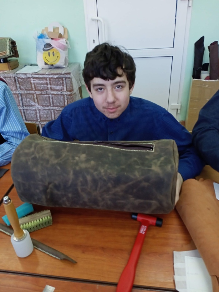 Это не все ребята, что закончили курс кожевенного ремесла. Это именно те, кто продолжил работу после выпускного.