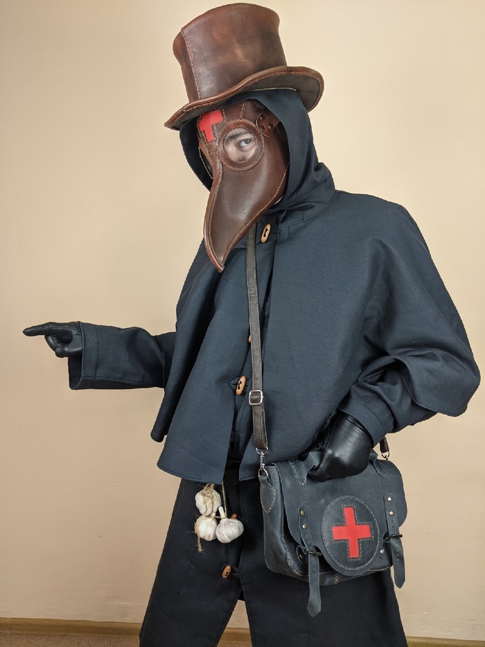 Так же именно он позировал в костюме Чумного доктора, который мы сшили в мастерской.