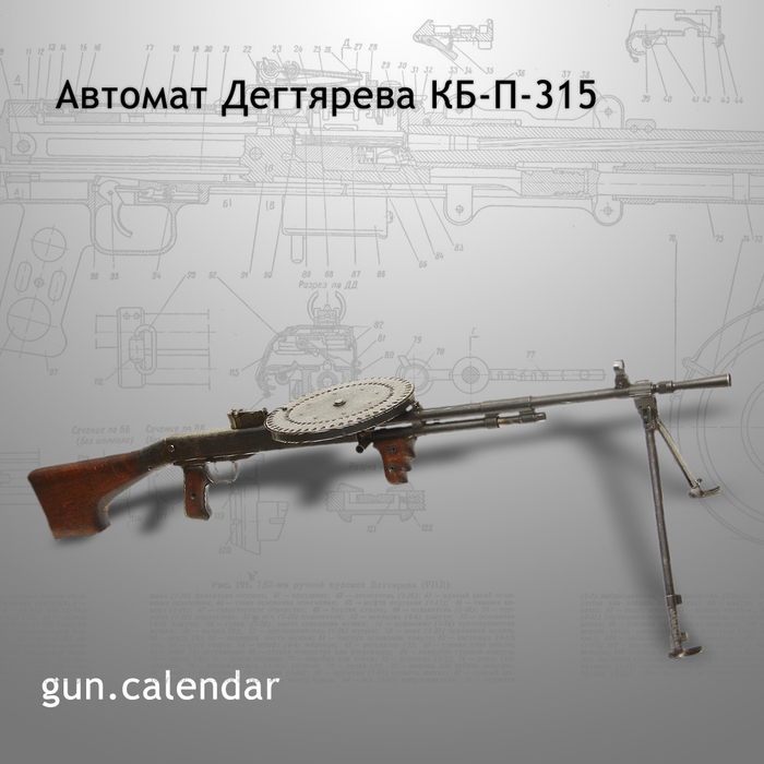 В июне 1944 года на научно-исследовательский полигон стрелкового вооружения ГАУ РККА стали поступать опытные образцы ручных пулеметов под 7,62х42 мм опытный промежуточный автоматный патрон обр. 1943 г.. «Промежуточный» патрон был разработан Н. М. Елизаровым, П. В. Рязановым, Б. В. Семиным и А. И. Забегиным, по размерам, массе, мощности и баллистическим характеристикам он занимает промежуточное положение между винтовочным и пистолетным патронами. При этом стоит отметить что конкурса на разработку нового легкого пулемета под промежуточный патрон не было, просто на конкурс по разработке нового 7,62-мм автомата было представлено множество образцов которые не удовлетворяли требованиям ТТЗ по габаритам и массе. В своих «Записках испытателя-оружейника» А.А. Малимон писал: «Комиссии А.Я. Башмарина пришлось произвести разборку представленных образцов по типам оружия. Образцы Дегтярёва с лентой и дисковым магазином, Симонова и Коровина сразу были отнесены к разряду ручных пулемётов, ещё до начала испытаний». Образец КБ-П-315 базировался на пулемете ДП с дисковым магазином сверху на 50 патронов и был сконструирован в КБ-2 на Ковровском заводе №2.