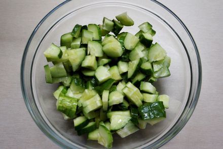 1. Огурцы помыть и нарезать полукружочками или брусочками.