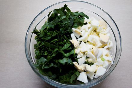 3. Щавель хорошо промыть под проточной водой, обсушить и мелко нашинковать.