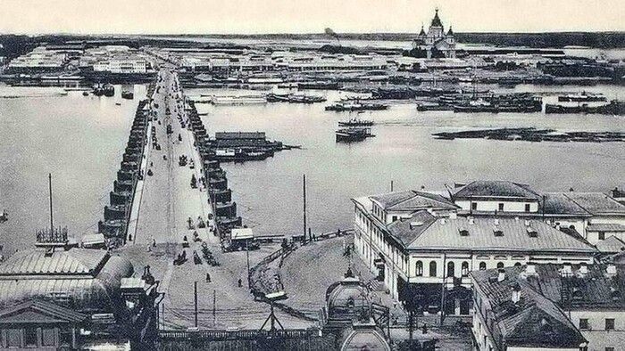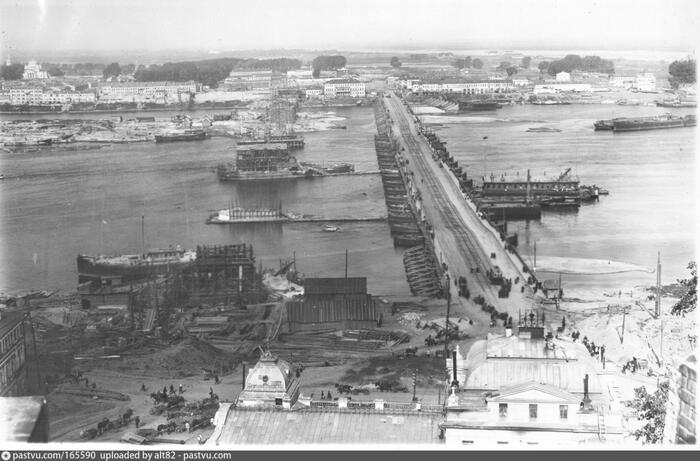 Здесь виден дом ( ярмарочная гостиница ), который был снесен при строительстве моста им. Пахомова ( потом Окский , теперь Канавинский )