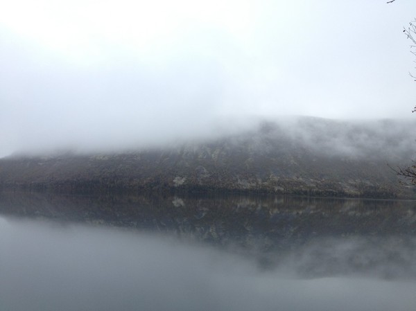 Наутро стало ясно, что мы выбрались не в лучшее время. Озеро было затянуто туманом, накрапывала неприятная морось. Времени хватило только для того, чтобы побродить по округе, позавтракать и, вспомнив прошлые 7 часов дороги с отклонением от маршрута, отправиться обратно. Туман постепенно уходил с озера.