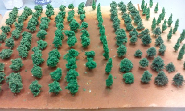 Пока ребята всё ещё чертят, а фрезы режут, то можно поделать "мелочёвку". Вот, например, сотенка деревьев (я их сделал, будучи ещё совсем неопытным, поэтому сейчас оцениваю уже на троечку) :
