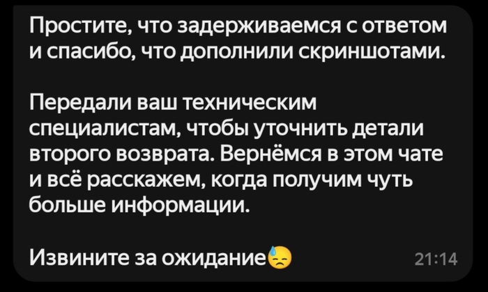 Оператор, по-видимому, признает ошибку системы и вроде как обещает разобраться.