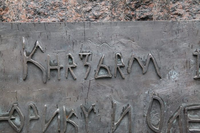 В Старой Ладоге есть памятник Рюрику и Олегу. У памятника есть табличка, на которой вместо "Я" написаны "R" во всех словах. Удивительное дело, учитывая то количество комиссий и согласований, которое обычно бывает по случаю установки памятника в историческом месте.