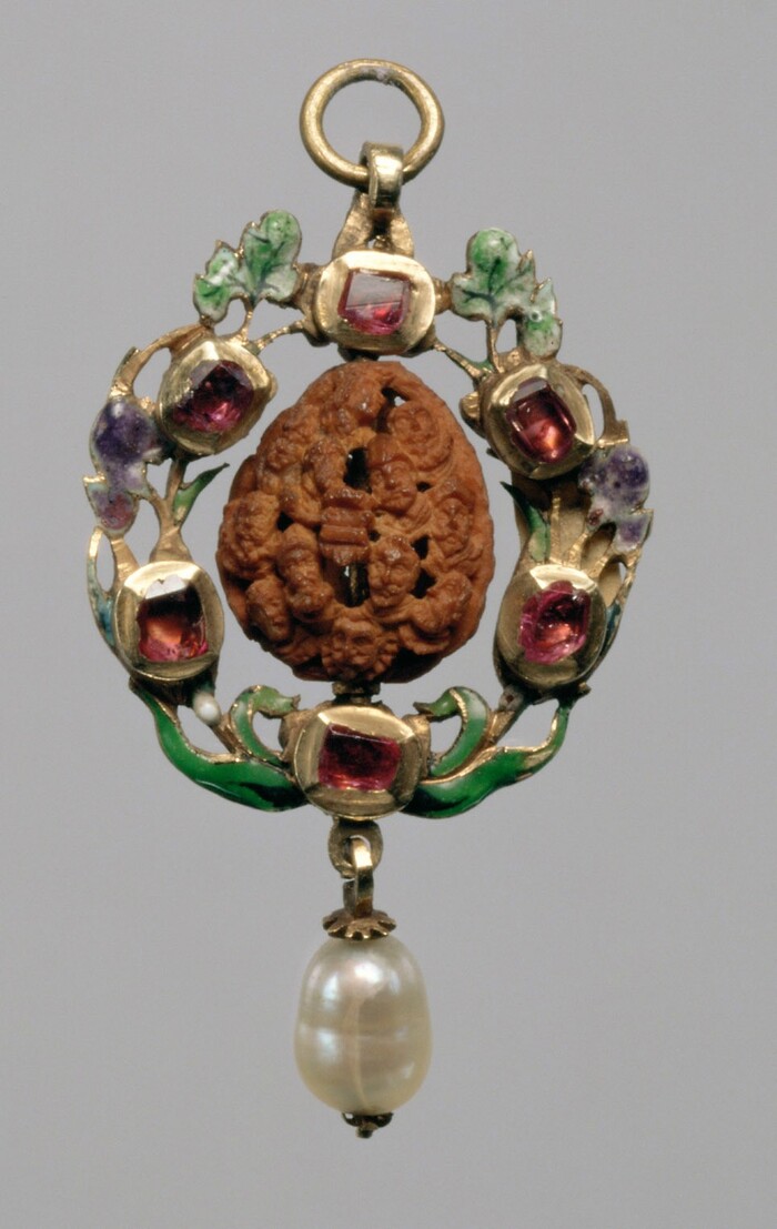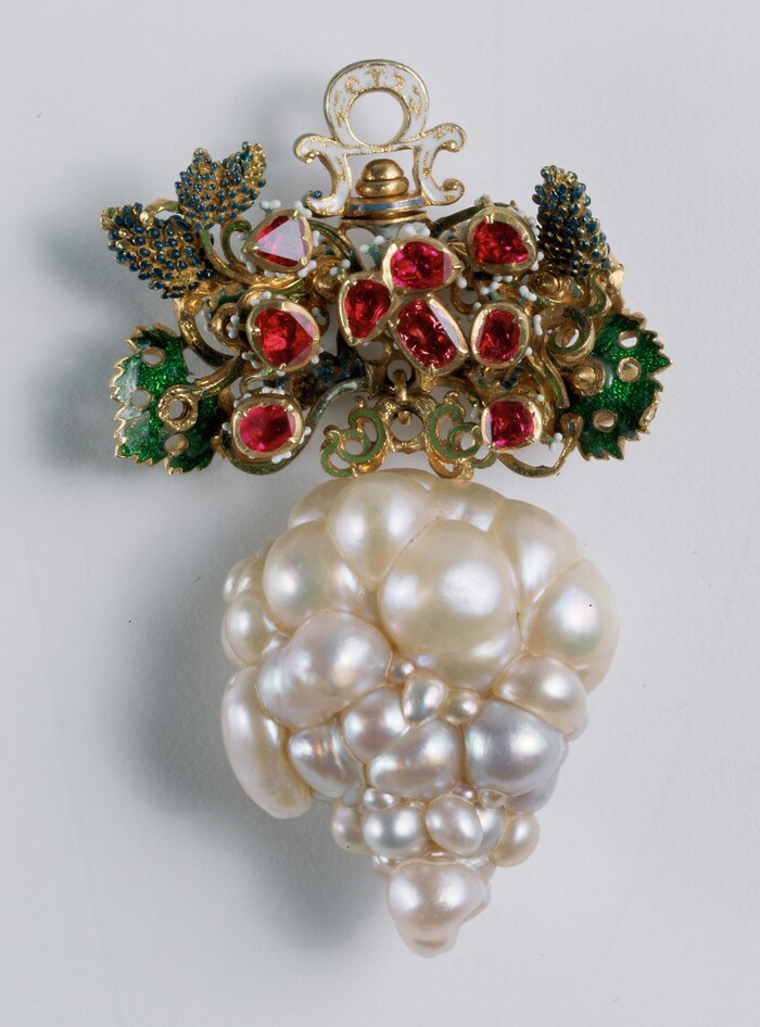 Кулон «Виноград». Огромная жемчужина, золото, рубины. Художественно-исторический музей Вены