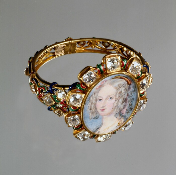 Браслеты принадлежащие Шарлотте Мексиканской. Золото, частично эмалированное, бриллианты, стекло. Художественно-исторический музей Вены