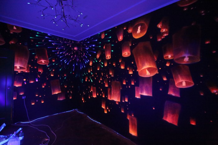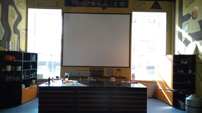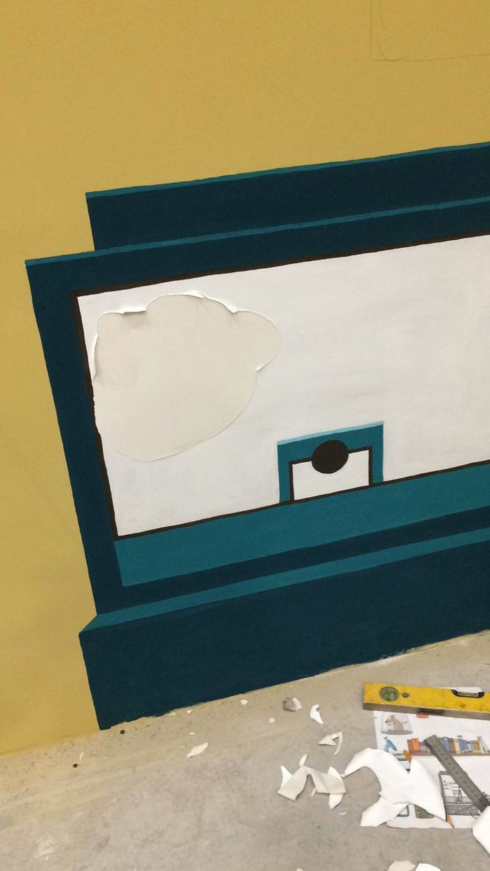 На одной стене нужно было нарисовать белый экран ( с кривыми стенами это было не так то просто сделать (: )