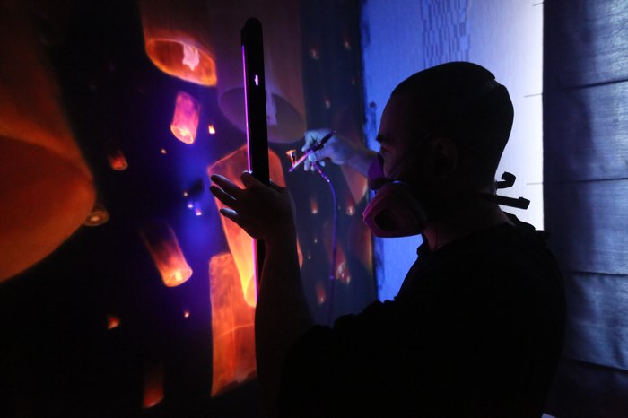 Учитывая, что сроки были итак ооочень сжатые, этот случай мне сильно подпортил нервы. Испорченную часть стены полностью закатали в цвет фона, и я рисовала ее заново, немного изменив детали.