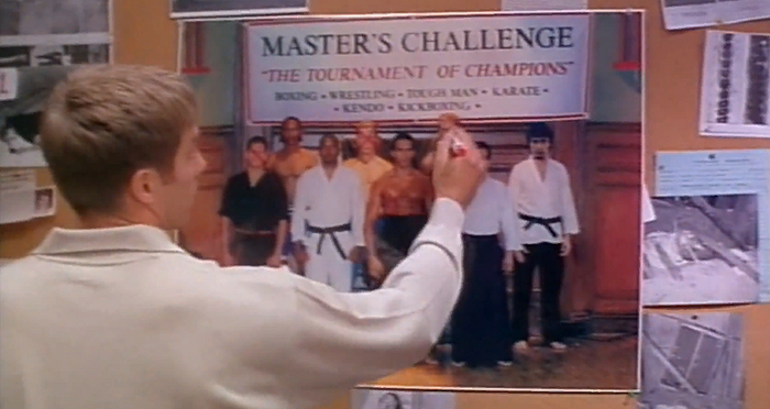 До конца фильма пол часа, сценарист решает, что пора рассказать нам, кого и зачем убивает маньяк (хотя мы итак поняли). В общем, психопат кончает чемпионов из разных видов единоборств, в участке даже находится общее фото с турнира чемпионов, где дрались жертвы. Хм, кто же убийца?