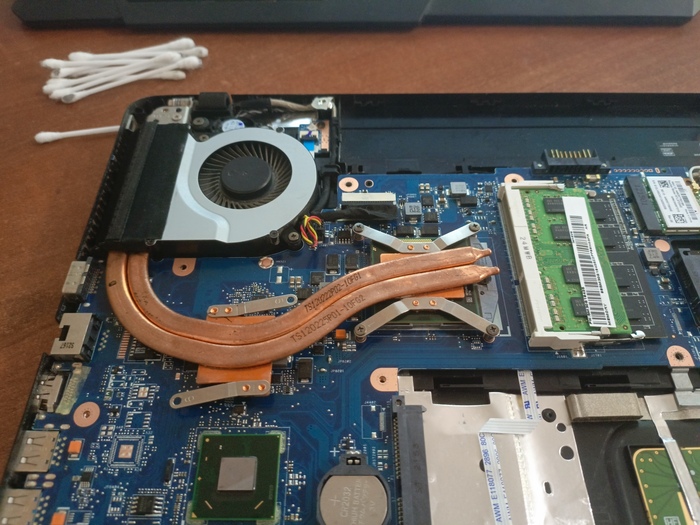 P.s. данную систему охлаждения позаимствовал у такого же ноутбука только с распаянной видео картой. Но для правильного прилегания термопластины к кристаллу процессора пришлось немного подогнуть эти трубки....