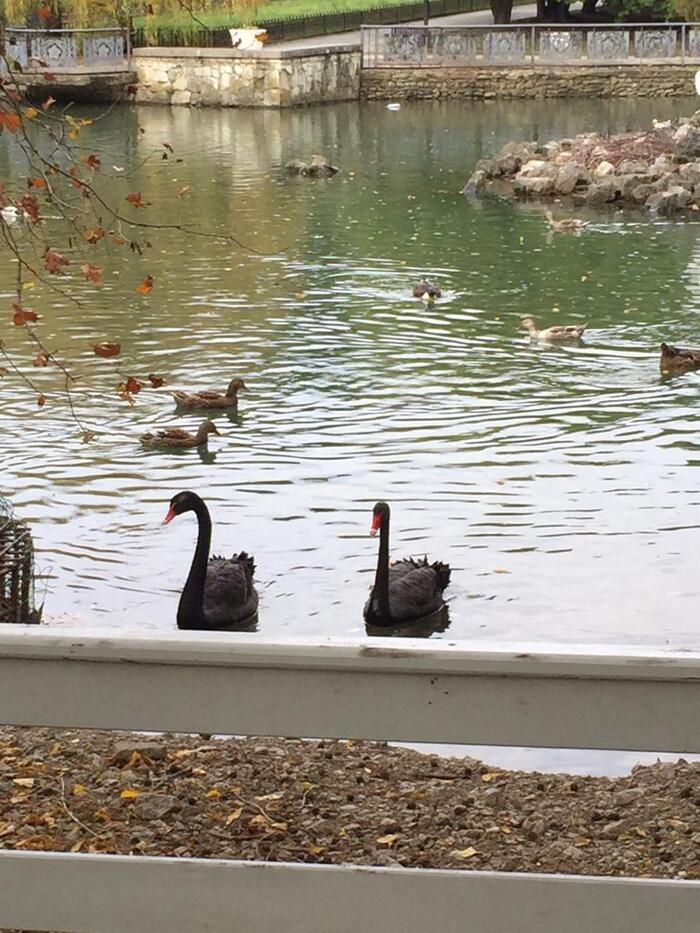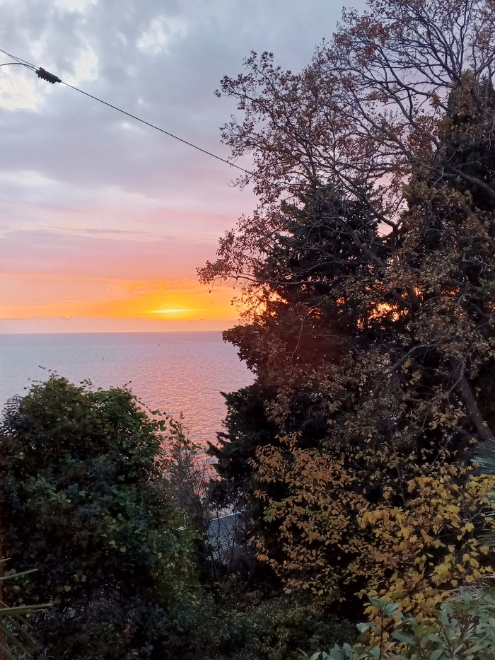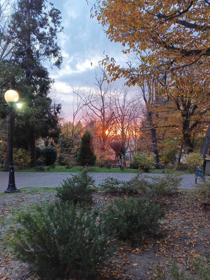 Вообще с парковками здесь проблема. Много машин, стоящих у обочины, давно ни куда не ездили, спустившие колеса, грязные лобовые стекла тому подтверждение. Надо сказать, большинство водителей здесь вежливые, как по отношению к пешеходам, так и друг другу. Есть конечно отдельная к-к-категория шоферов, но их нам попадалось немного. Сегодня прогулялись по Курортному проспекту до Фестивального парка, там посидели - отдохнули. Парк маленький, против того что мы видели ранее. Но там есть спорт городок и игровая площадка для детей, на которой было много, ребятишек разных возрастов. Пока шли к берегу, пошел дождь, пришлось пережидать его под магнолиями, возле дендропарка, рядом с прудом, где плавали два чёрных лебедя, два пеликана и много разных уток. Пеликаны, чего то искали на дне, своими большими клювами. Дождь закончился, мы пришли на набережную, уже и не надеясь увидеть закат, все небо было в тучах. Но все таки солнце появилось на каких-то пять минут! И мы успели снять еще один волшебный закат.....