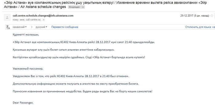 а по телефону, кстати, ответили на вопрос о претензии к Аir Astana за всё это - "ну вы же сами перерегистрировали свой рейс. И вам это сделали. Скажите СПАСИБО!"