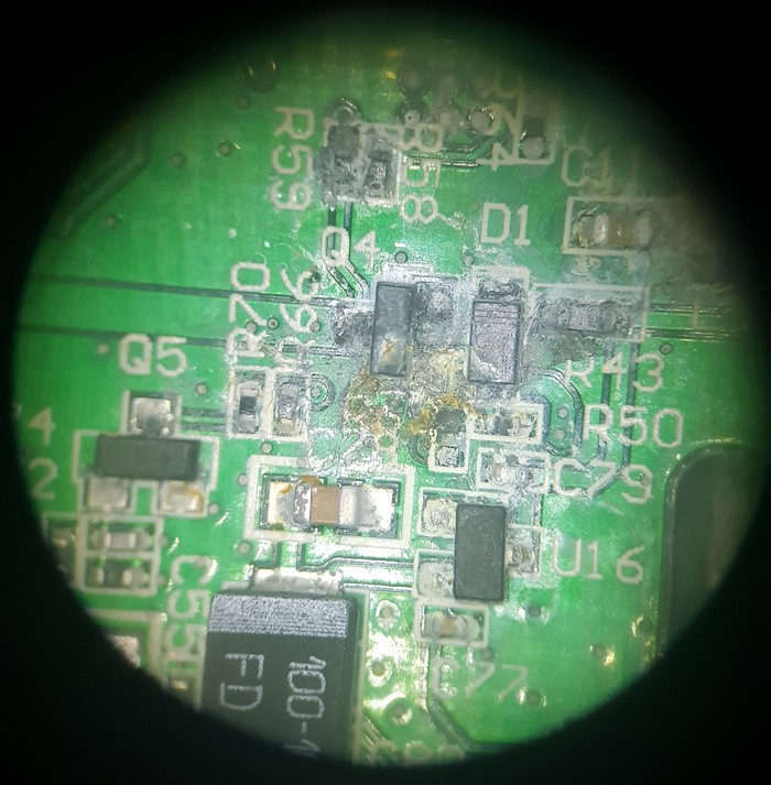 Достаем плату и идём осматривать все элементы на предмет повреждений.