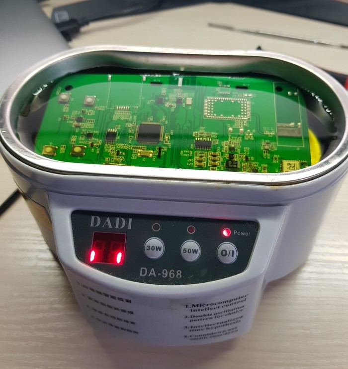 Для начала, отправим плату купаться в ультразвуковую ванночку.