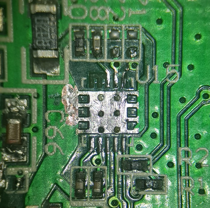 Дальнейший осмотр платы не выявил каких-то ну очень подозрительных элементов, но на всякий случай я пропаяла всю обвязку, все разъемы...