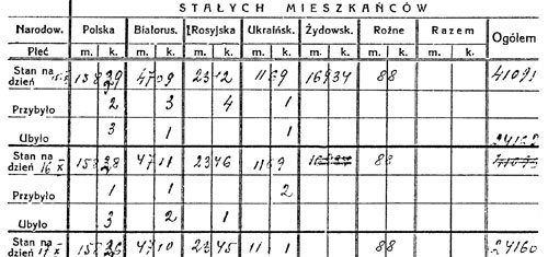 Номер датирован 16 октября 1942 года – днем, когда перестало существовать брестское гетто. В этот день рука писаря городской управы, заполнявшая Книгу учета и контроля движения населения Бреста, автоматически вывела привычное списочное число еврейского населения и, спохватившись, зачеркнула двумя горизонтальными чертами.