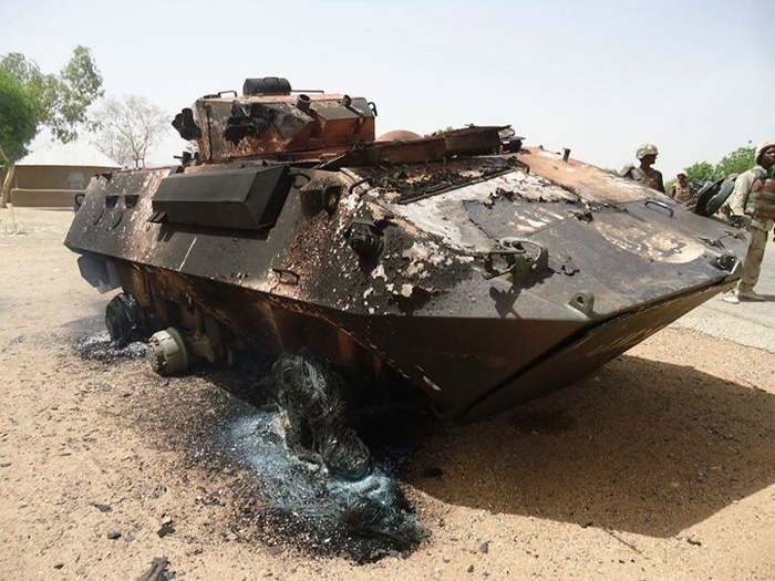 Стоит отметить что Боко Харам в отличие от большинства других террористических организаций активно использует в боях трофейную бронетехнику включая танки Т-55 и Vickers Mk.3, причём с собственными опознавательными знаками. Из всех филиалов ИГ такое активное применение техники можно было наблюдать пожалуй только в Сирии и Ираке.