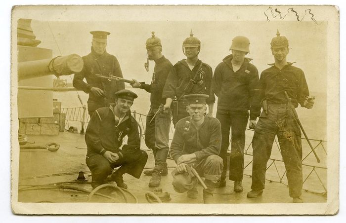 Адъютанты гетмана Скоропадского Абдул Захидов и Гнат Зеленевский общаются с адъютантами кайзера, 1918.