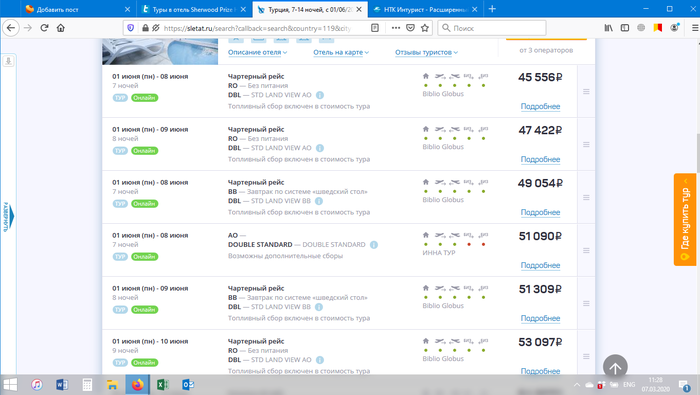 Проверим эту цену на проверенном настоящем агрегаторе туров (в том смысле, что он, действительно, качает данные с баз данных операторов) - sletat.ru.