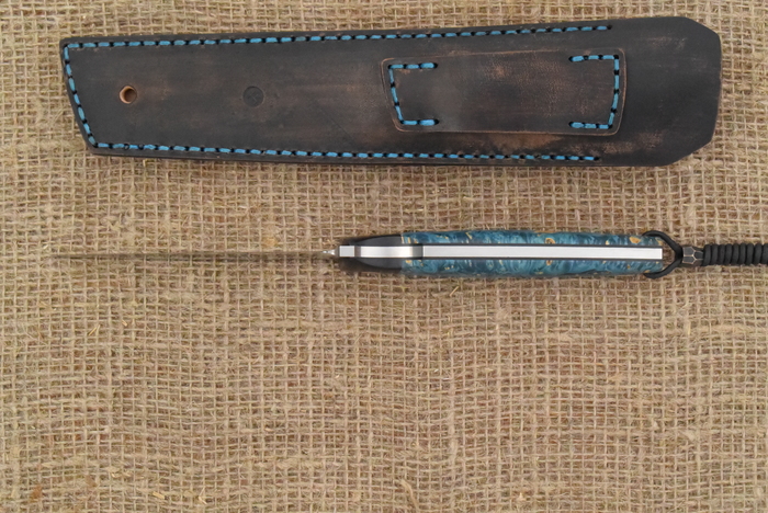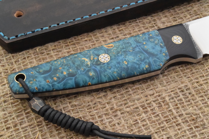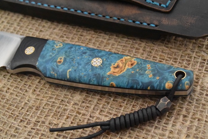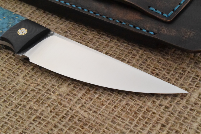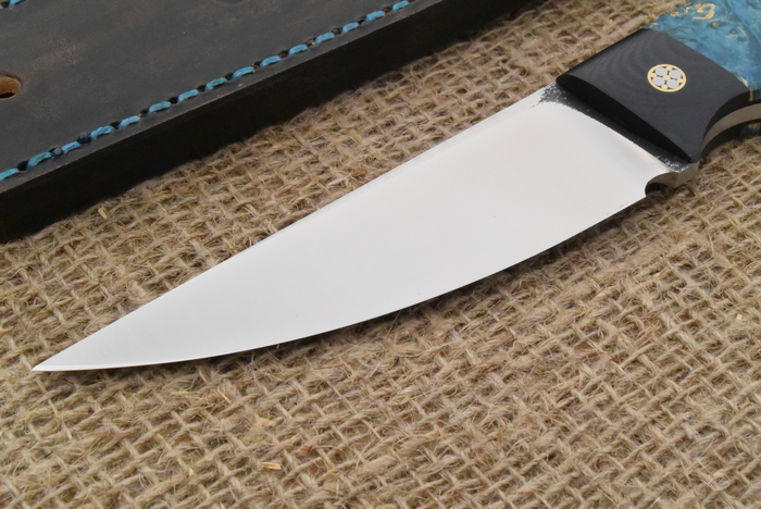 Запилил очередного Бардачкового,в этот раз с синим капом клена. Сталь взял снова у Влада Бондаренко,но в этот раз Х12МФ. Давно не работал с ней. При одинаковой твердости с 95Х18,обрабатывать и точить ее немного сложнее,соответственно и рез сохраняется дольше. Не напрасно ее так любили ножеманы в свое теплое ламповое время)))