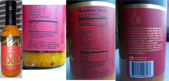 The Last Dab XXX. Внезапно, оказался слабоострый! Слабее даже Pain 100%. Жжет только в горле и то не сильно. Зато вкусный - очень интересное и непривычное мне сочетание специй. (Состав: Pepper X, Шоколадный Pepper X, Персиковый Pepper X, корень имбиря, куркума, кориандр, тмин, сухая горчица). Очень густой - из бутылки надо вытряхивать. В целом, понравился. Недостаток - только разочарование в завышенных ожиданиях по поводу остроты.