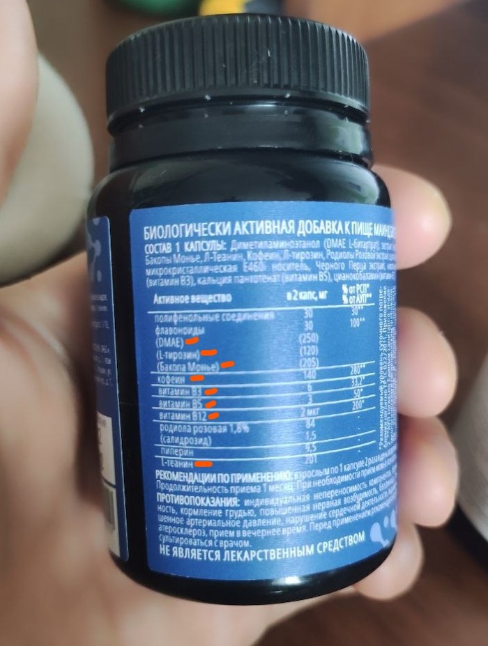 Кому лень покупать всё отдельно, есть рабочий вариант 10 добавок, 5 из которых из этого списка. Неплохой вариант Mind Booster от Nooteria Labs. Я бы даже сказал 6, потому что DMAE для сохранения ацетилхолина тоже неплохо работает.