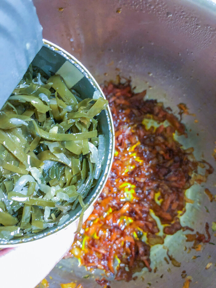 1 банку консервированной морской капусты " салат по дальневосточному"