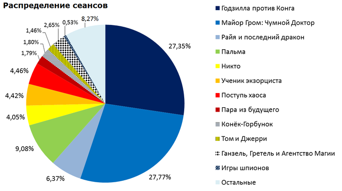 Кассовые сборы российского кинопроката и распределение сеансов за прошедший уик-энд (1 - 4 апреля)