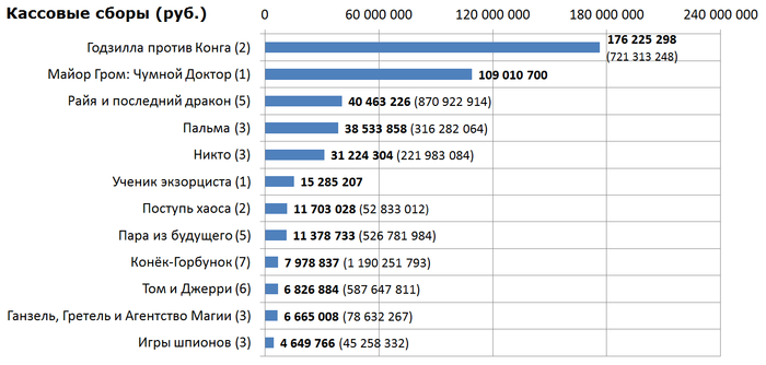 Цифра в скобках после названия обозначает, какую неделю фильм идёт в широком прокате.