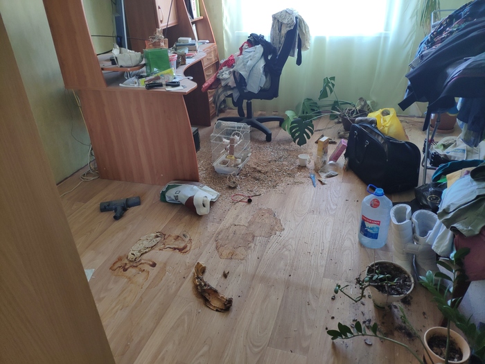 И вот сегодня я с женой поехал к знакомому в тот район. На обратном пути решили заскочить посмотреть на маминых птичек. Завела себе недавно. Тут отмечу что в квартире мамы давно не были (примерно месяцев 7-8) - она приглашать перестала и как-то повелось что встречались мы всегда в квартире сестры либо у меня. Значит заходим за порог и... у меня ключи из рук чуть не упали. Сначала думал что квартиру ограбили. Потом подумал что по ошибке зашел не к маме, а какой-то бабке сумасшедшей.