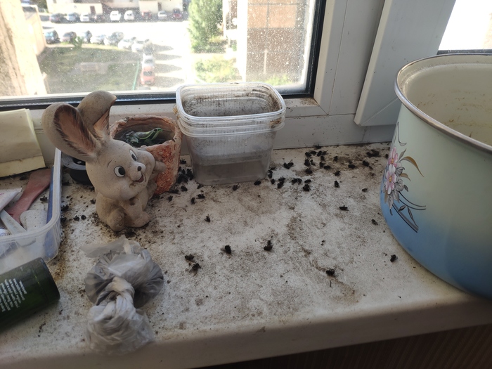 Это подоконник на кухне. Рядом в кастрюле плавает непонятная субстанция.