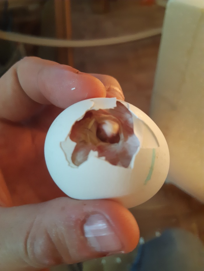 к исходу 20 суток пошли проклевки в 3 яйцах из 4 оставшихся