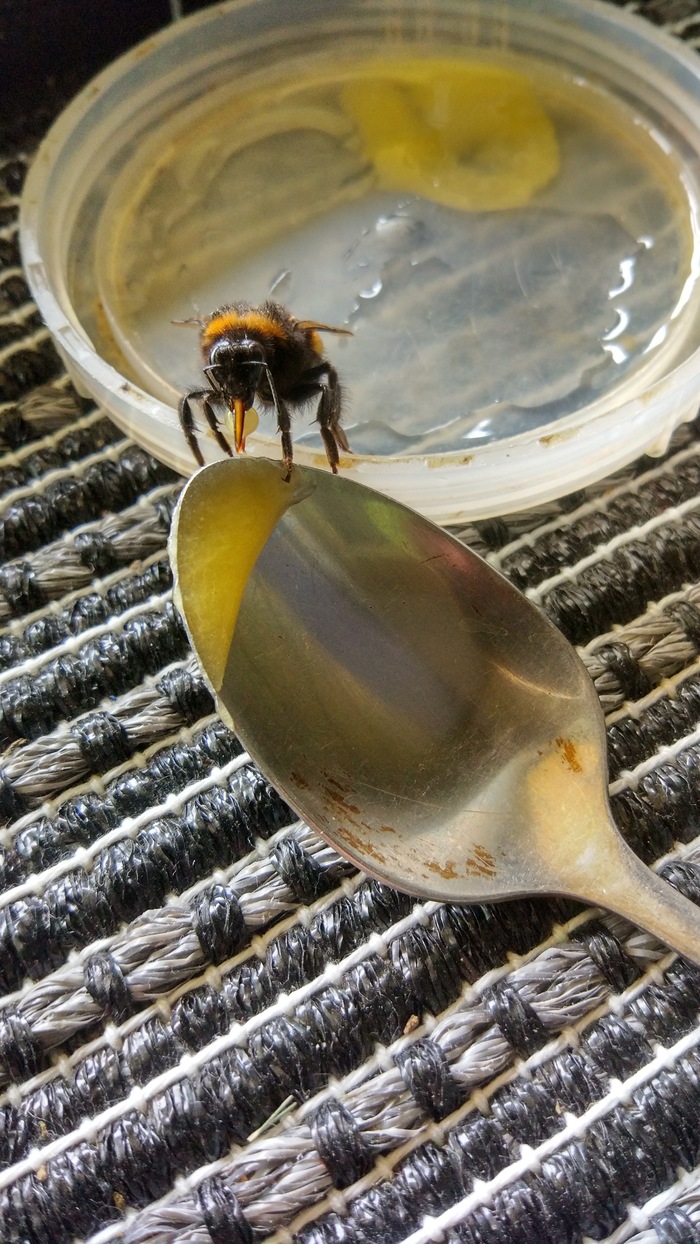 Как известно, каждый пикабушник должен спасти, как минимум, одного шмеля. На пороге дома на даче ползал обессиленный шмель, еле шевеля лапками, пытаясь переползти порог. Всё сделал, как предписывают инструкции Пикабу. Реанимационный набор: мёд, вода, ложка. Процедура заняла 10 минут, после чего пациент, сделав надо мной круг почёта, пожужжал по своим шмелиным делам.