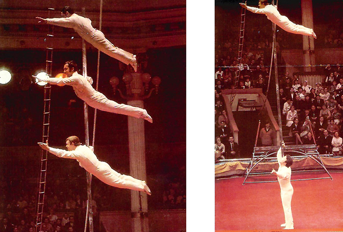 Вообще, в этом жанре, в работе с першами, обычно несколько нижних. Вот, например, французы работали с першами – нижних было 2-3 человека всегда, они исполняли по несколько трюков в номере. Но я работал один. Надо сказать, что перши – это всегда была такая замедленная работа, медленно поднимают перш, потом лезет один, потом второй партнер, темпа не было, и между трюками тоже. А я изменил жанр – сделал все в темпе.