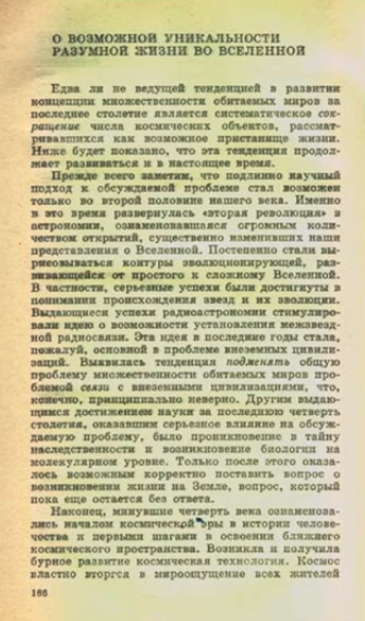 К 80-му году начало возрастать разочарование, пессимизм, которое отразил в себе И.С. Шкловский. В 1978 году он написал в журнале "Вопросы философии" статью: "О возможной уникальности разумной жизни во вселенной".