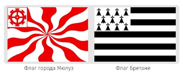 Флагов с крыжом всего два. Первый флаг свободного имперского города Мюлуз. Название которого происходит от немецкого «mühle», что переводится как «мельница».