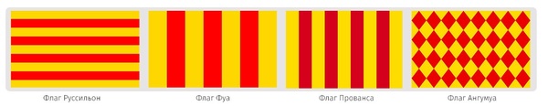 Паттерном для данного типа флагов выступит каталонский герб или флаг Прованса. Это связанно с влиянием Испании, оказанным на эти провинции.