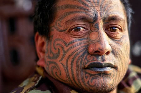 Издревле татуировку наносили специальными палочками,натуральный краситель вбивали в кожу зачастую по особым трафаретам, а кожу вокруг татуировки выбеляли, для достижения большего контраста. Рисунки на татуировках имели также особое значение, в зависимости от места и вида рисунка. В зависимости от племени в котором наносилась татуировка традиции и способы нанесения менялись, иногда даже использовался акулий зуб. Считалось обычным делом делать татуировки на лице, что показывало статус война.