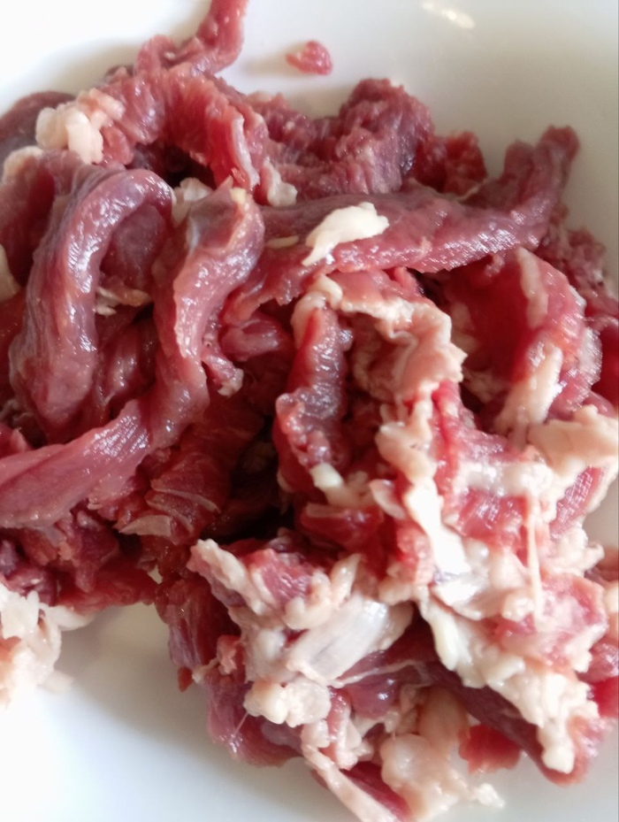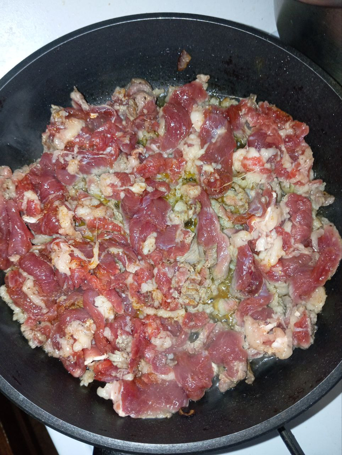 Лука кстати я ещё больше нарезал после того как сфоткал. Его должно быть примерное как говядины по объёму.