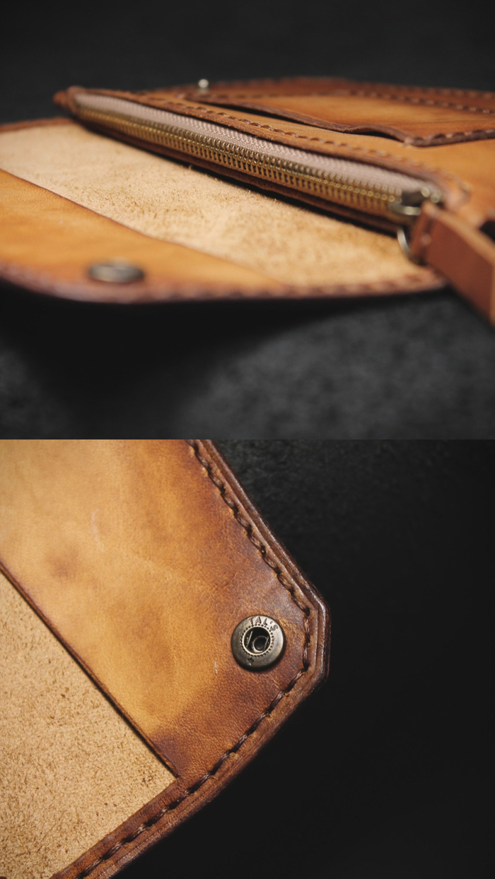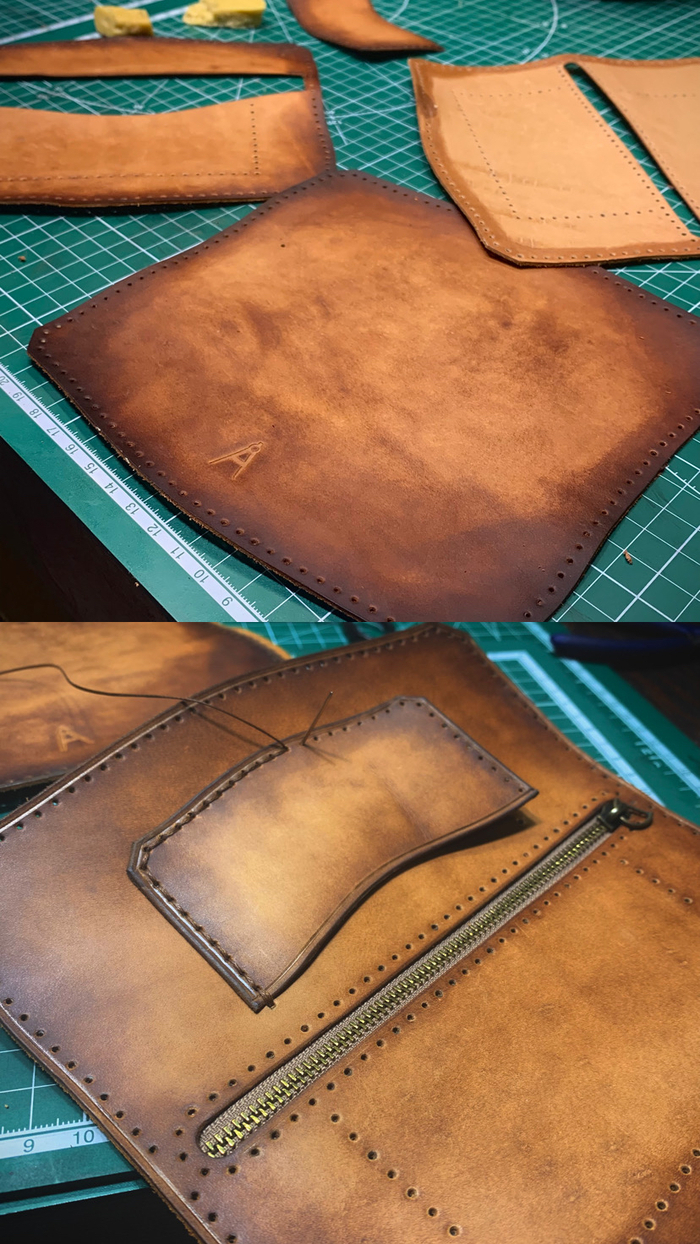 Кожу взял комбинированного дубления и как следует провощил масло-воском собственного изготовления. Для полировки и затемнения краёв использовал войлочный круг.