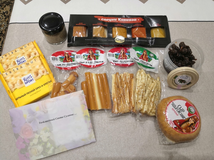 Самый не обычный и приятный подарочек из Республики Адыгея. Ждала с нетерпением. Все было очень вкусно))) Жаль только, что наша почта России с пересылкой, разбила баночку с вареньем, но попробовать получилась) Мечта попробовать варенье из кедровых шишек сбылась)) А сыр, это просто не описать словами, никогда такой не ела, слюньки прям текли, очень вкусный)) Спасибо тебе большое частичку ваших вкусняшек, Сусанна :)