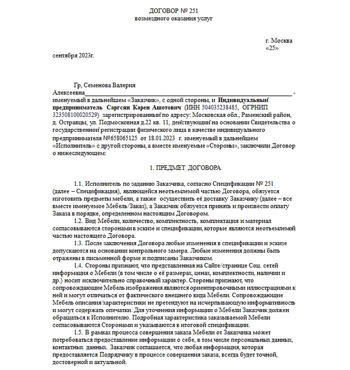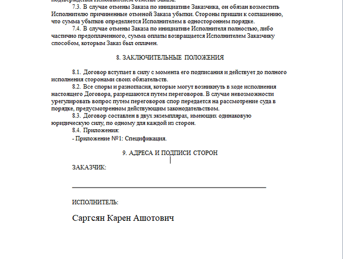 Тот самый договор (по которому уже и так очевидны некоторые нарушения, но как к ним привлечь исполнителя?):